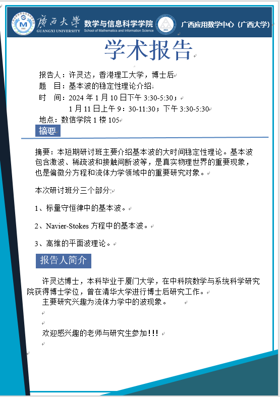 学术报告:基本波的稳定性理论介绍