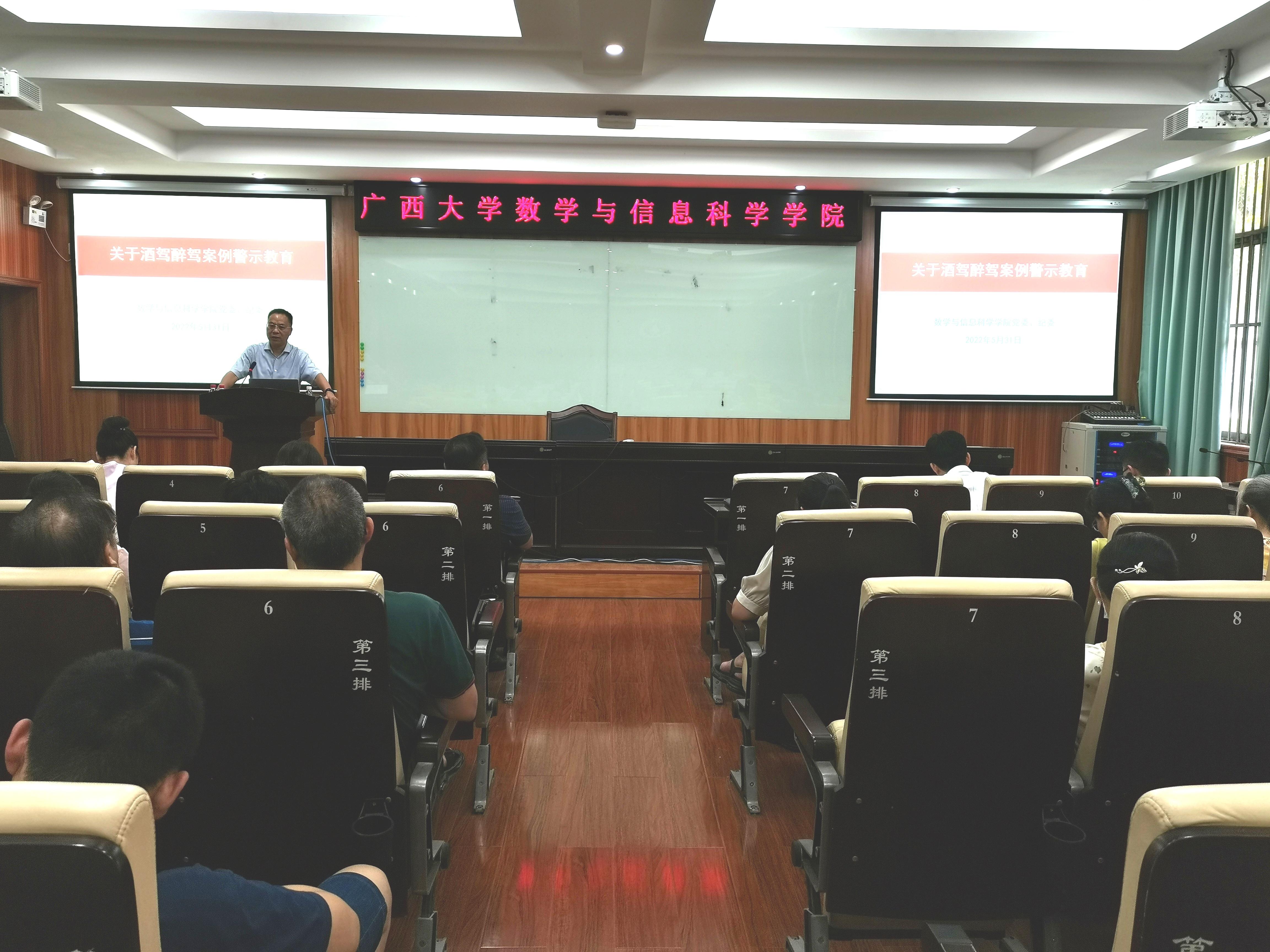 为营造风清气正的政治生态和育人环境,加强廉洁文化建设,数信学院于5月31日下午召开公司教职工大会,开展酒驾醉驾问题以案明纪警示教育,会议由公司党委书记黄建荣主持。