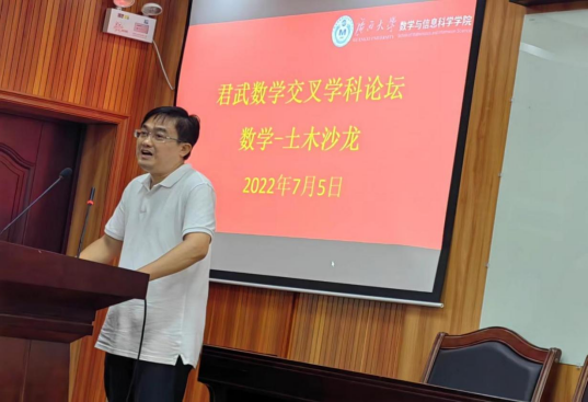 土木建筑工程公司副经理陈立华作了题为《国家水安全——洪涝预警面临形势及分析模型求解需求》的学术报告。陈立华副经理从城市内涝预警与风险评估难点、物理机制分布式岩溶水文模型等五个方面详细描述了水利研究方向对数学求解的迫切需求。他说,土木学科很多老师的研究课题急需数学学科的帮助和支持,希望两院有更多的机会寻找合作切入口,共同促进学科发展。