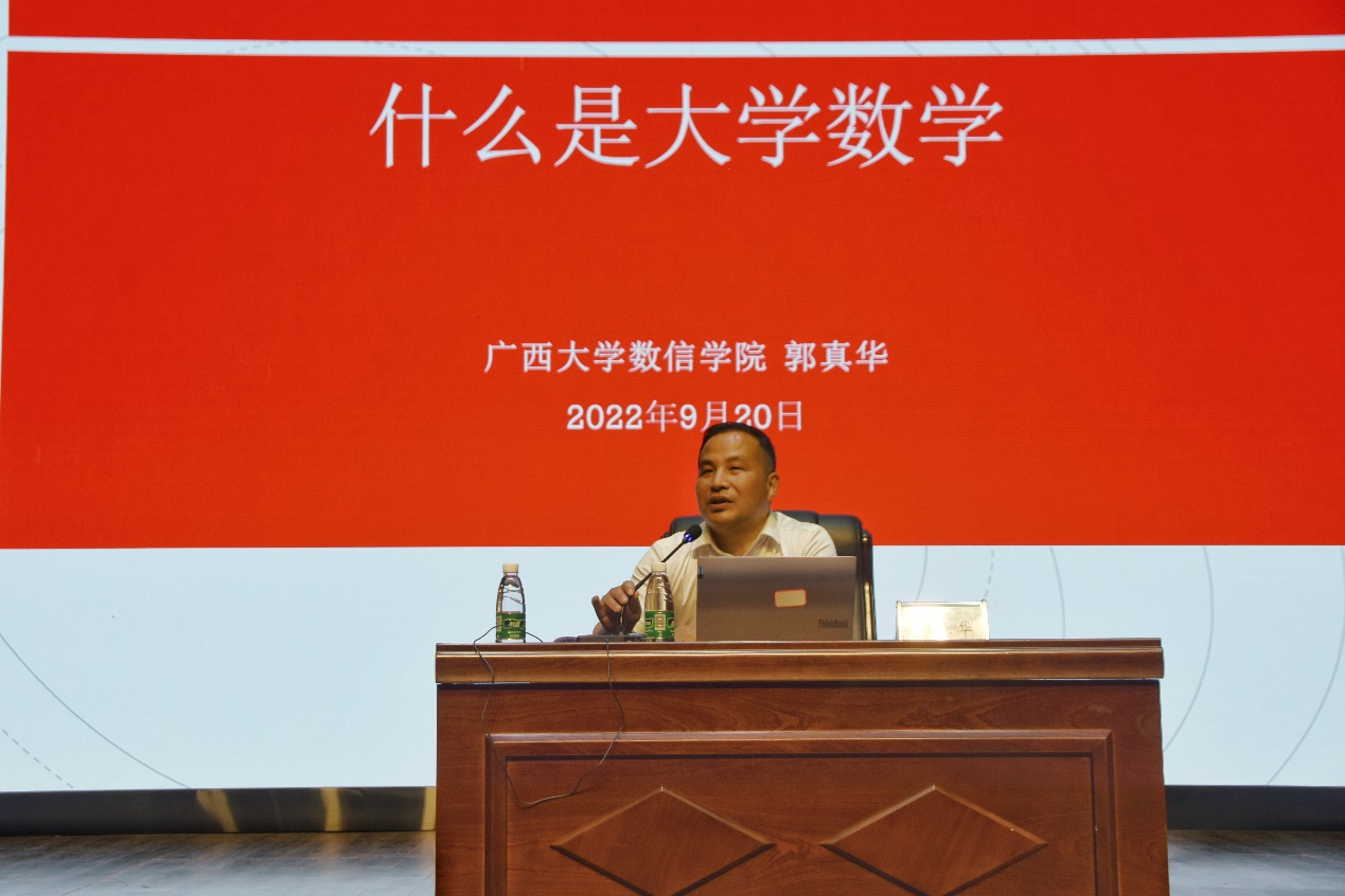 开学典礼结束后,由公司经理、博士生导师、英国威廉集团官网君武学者郭真华教授为全体新生讲授开学第一课。郭真华经理从“什么是大学”“什么是大学数学”“如何学好大学数学”三个层面,阐述了大学 “立德树人”历史使命的由来和内涵,详细介绍了大学数学作为基础学科的深刻含义、现阶段的重要地位以及公司当前“数学拔尖人才培养实验班-研究型人才”“数据科学实验班-应用型人才”两种数学人才的培养思路,并对在大学如何学习数学、理解数学向新生们提出了具体的指导建议。