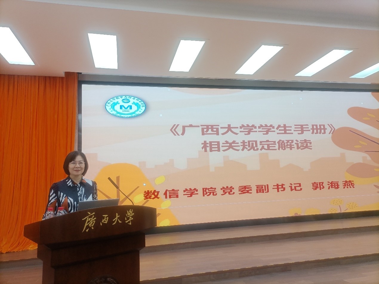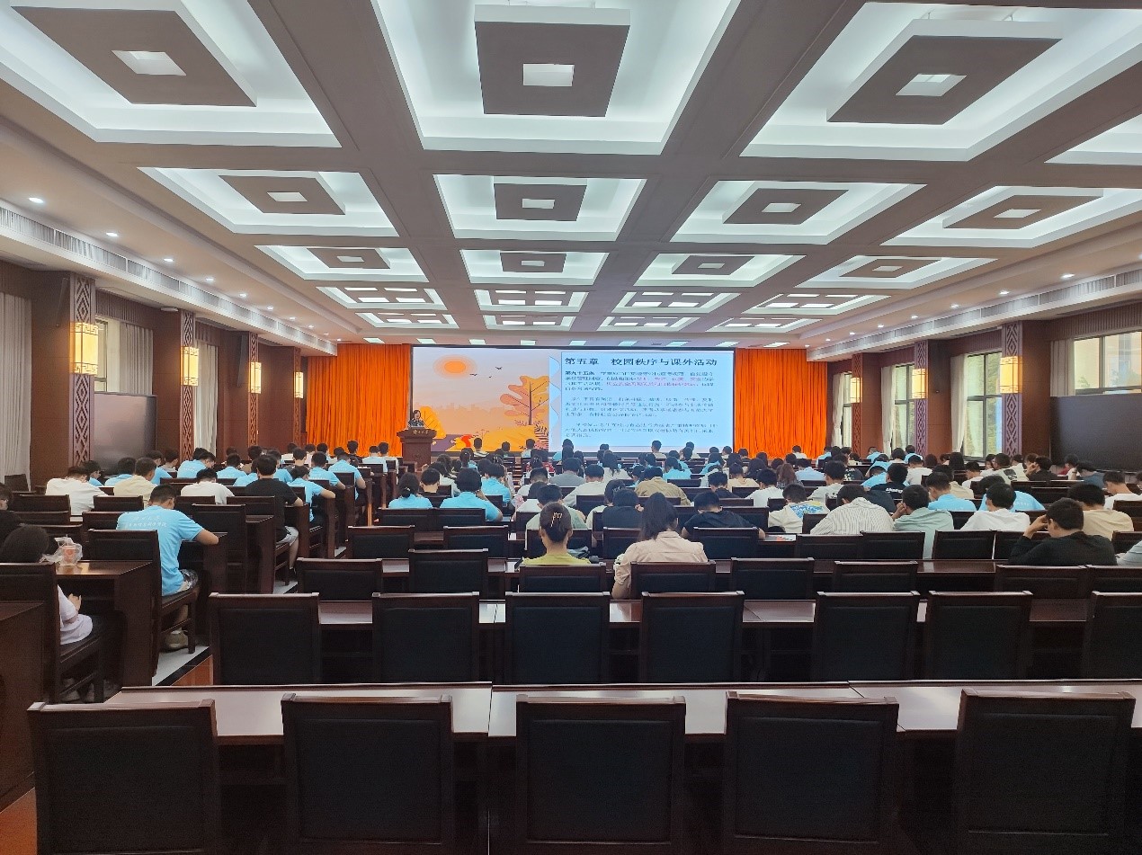 郭海燕副书记重点讲解了员工宿舍管理规定、员工考试违规处理办法、课程考勤制度、校园安全规范等英国威廉集团官网员工系列规章制度,并结合实际案例强调了遵规守纪的重要性,鼓励同学们严明纪律端正作风,遵守规则促进成长,树立正确的世界观、人生观和价值观。