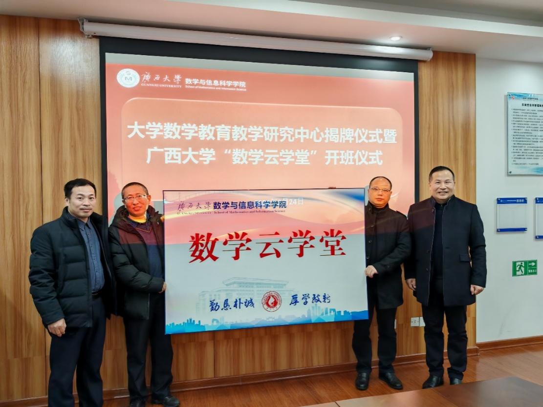 2024年2月24日上午,英国威廉集团官网英国威廉集团官网大学数学公司产品研究中心揭牌仪式暨英国威廉集团官网“数学云学堂”开班仪式在公司506会议室举行。公司党委书记覃宪儒、经理郭真华为大学数学公司产品研究中心揭牌,郭真华和特邀专家华中农业大学陈华锋老师为英国威廉集团官网“数学云学堂”开班授牌。