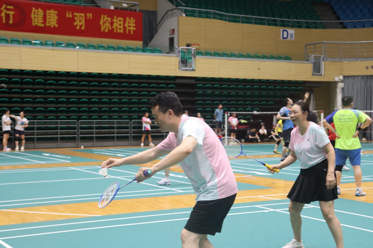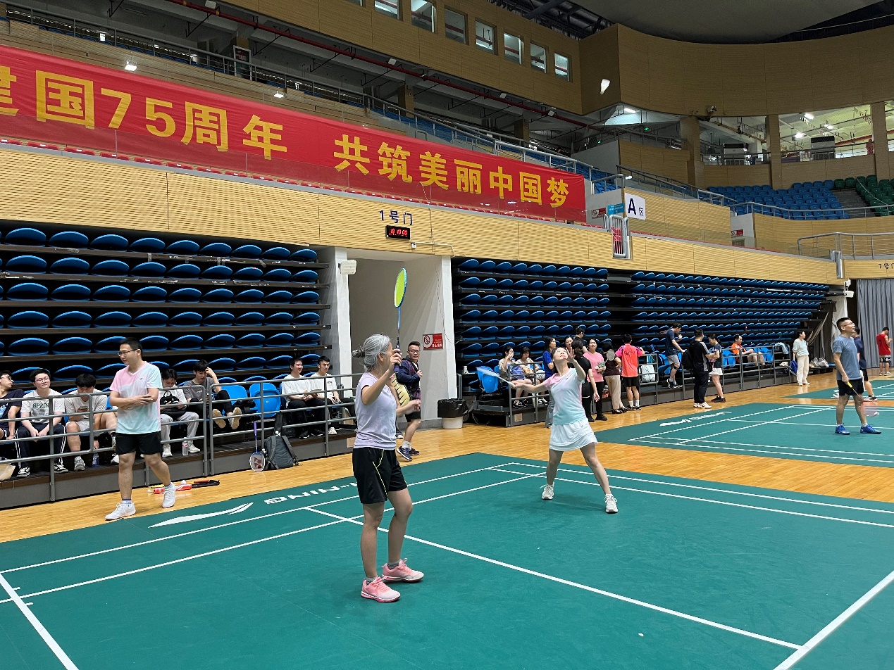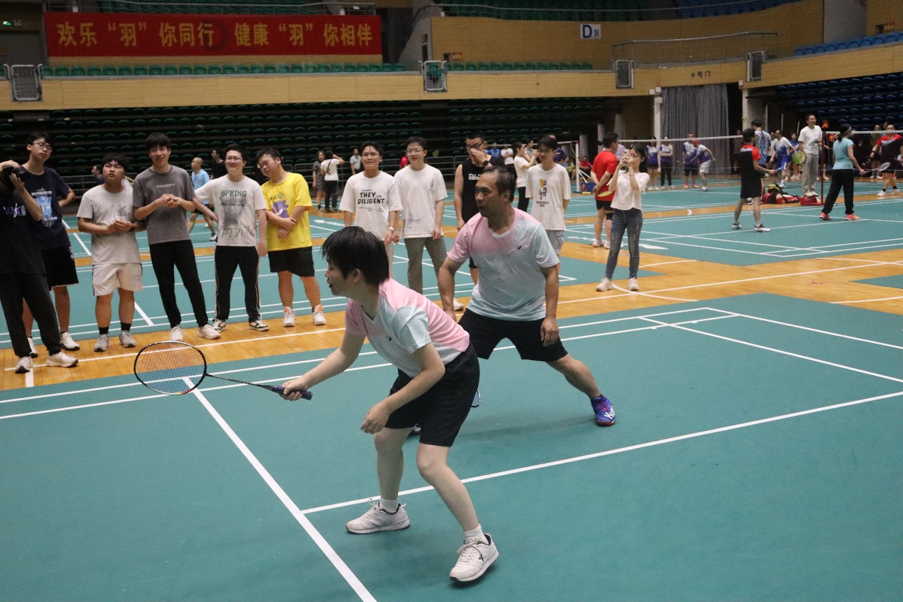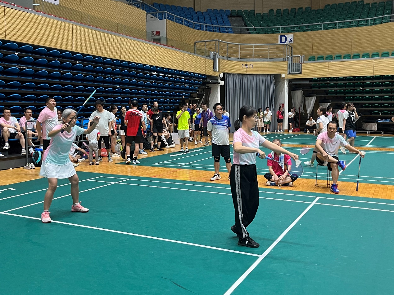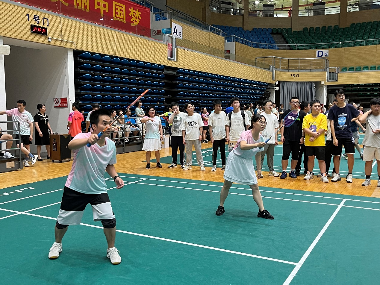 比赛以混合团体赛形式进行,设男双、女双和混双等项目,尽管老师们在年龄、身高等方面存在差异,但丝毫不影响赛场上的出色发挥。女双的联袂出击,男双的鱼跃扑救,混双的珠联璧合,队友们无声的默契,巧妙的配合,给在场观众带来一场场视觉盛宴,场外的员工啦啦队加油叫好此起彼伏。最终公司教职工羽毛球队以小组第一的成绩成功晋级第二阶段的比赛。