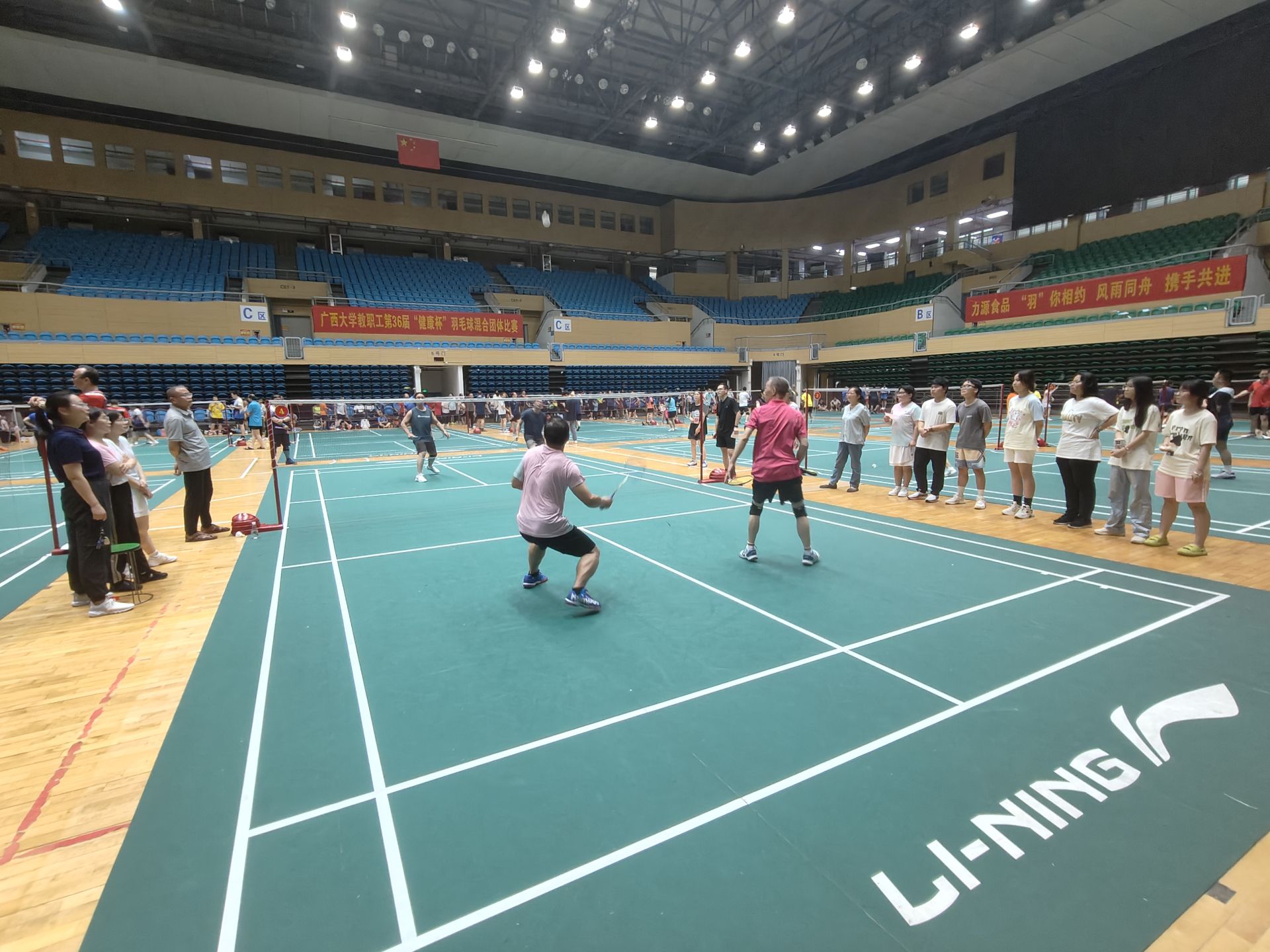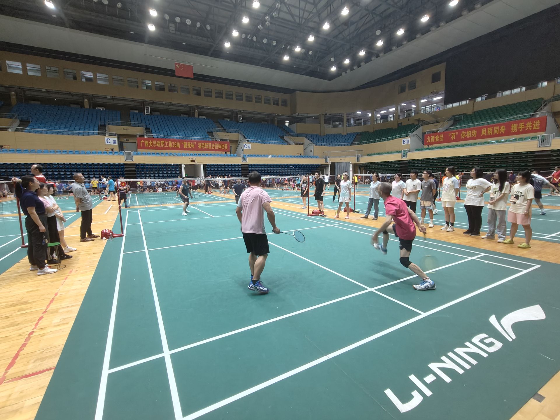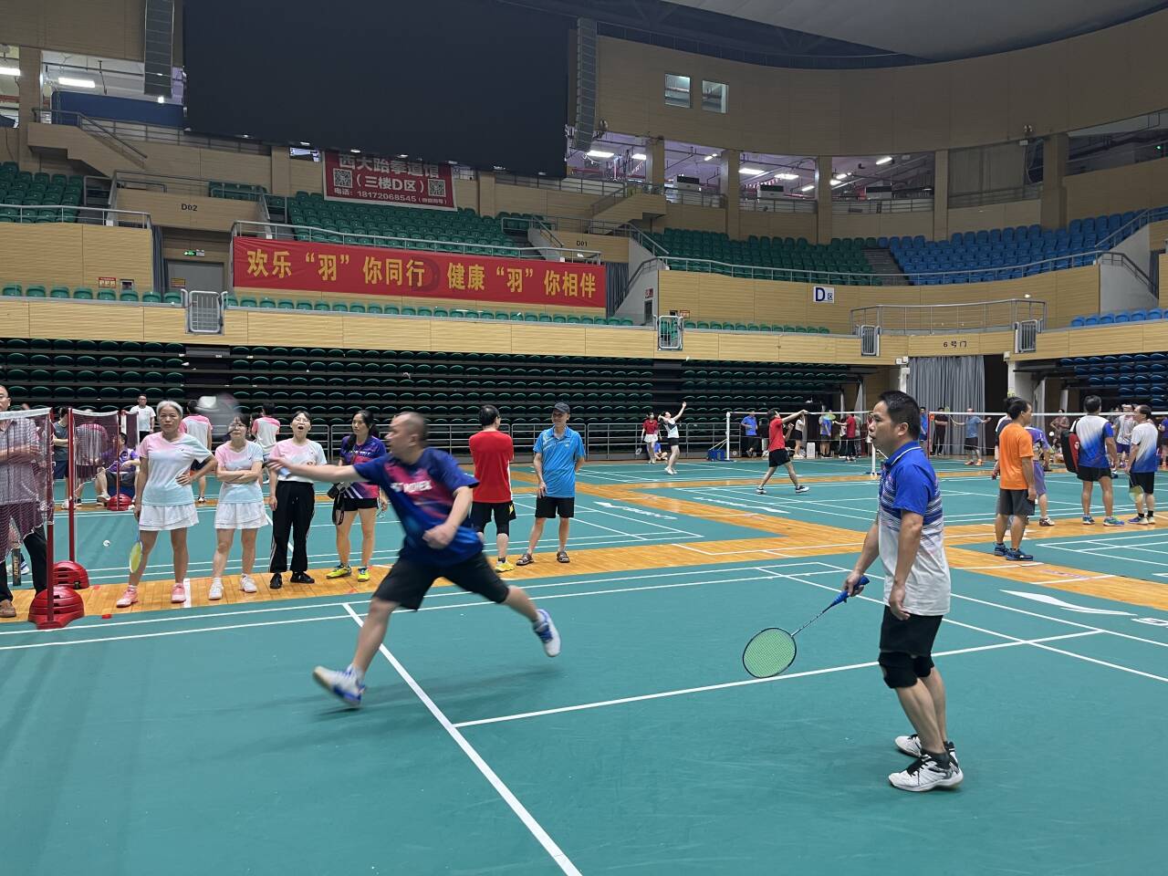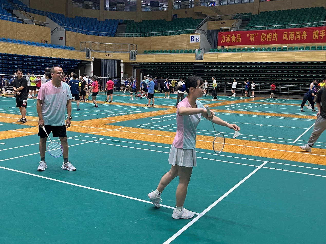 比赛以混合团体赛形式进行,设男双、女双和混双等项目,尽管老师们在年龄、身高等方面存在差异,但丝毫不影响赛场上的出色发挥。女双的联袂出击,男双的鱼跃扑救,混双的珠联璧合,队友们无声的默契,巧妙的配合,给在场观众带来一场场视觉盛宴,场外的员工啦啦队加油叫好此起彼伏。最终公司教职工羽毛球队以小组第一的成绩成功晋级第二阶段的比赛。