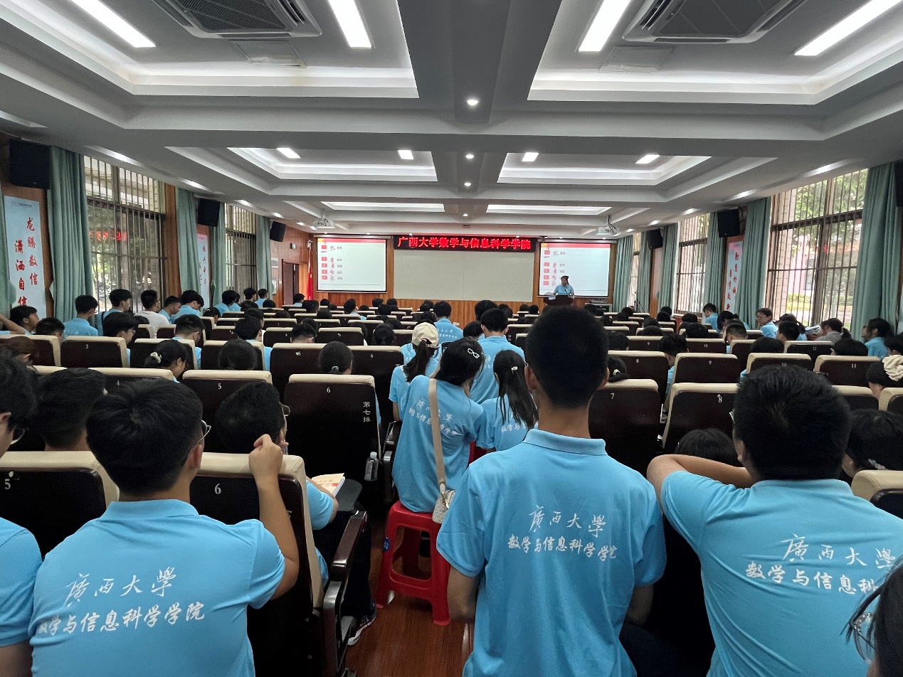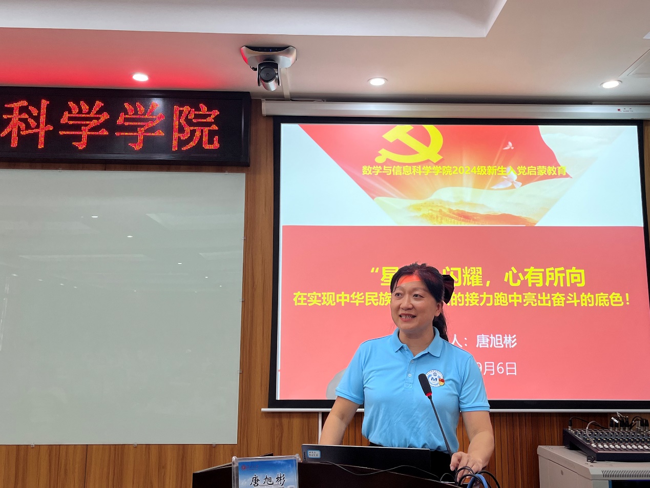 为深化公司2024级新生对党的认知与理解,激发其爱国情怀与荣誉感,并引导其快速适应老员工活,9月6日下午,数学与信息科学公司党委副书记唐旭彬以“星火闪耀,心有所向”为题给2024级新生开展入党启发教育和校规校纪学习教育。数信公司全体辅导员老师一同参加报告会。