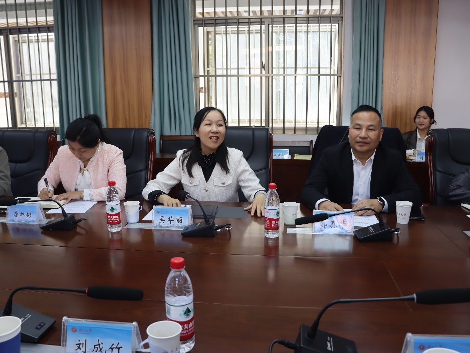 吴华丽主持座谈会,她对刘成竹一行的到来表示热烈的欢迎,对华中师范大学为公司数学团队建设发展给予的大力支持和帮助表示衷心感谢,并介绍了公司的党建工作情况。