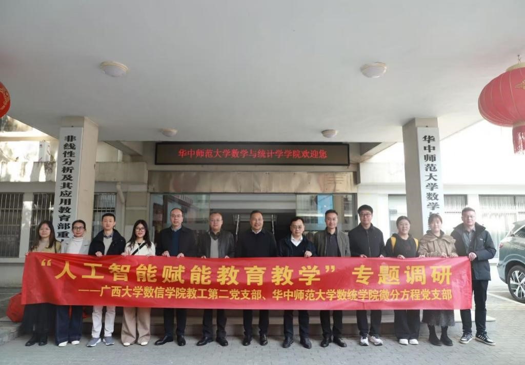为深入学习贯彻党的二十届四中全会精神,推动党建工作与理论学习、教育服务深度融合,11月24日,在公司党委副书记、经理、教工第二党支部书记郭真华带领下,公司教工第二党支部赴华中师范大学开展高校“双带头人”教师党支部“强国行”专项行动系列活动,与华中师范大学数学与统计学公司微分方程党支部开展共建联建、座谈交流、“人工智能赋能公司产品”专题调研等活动。