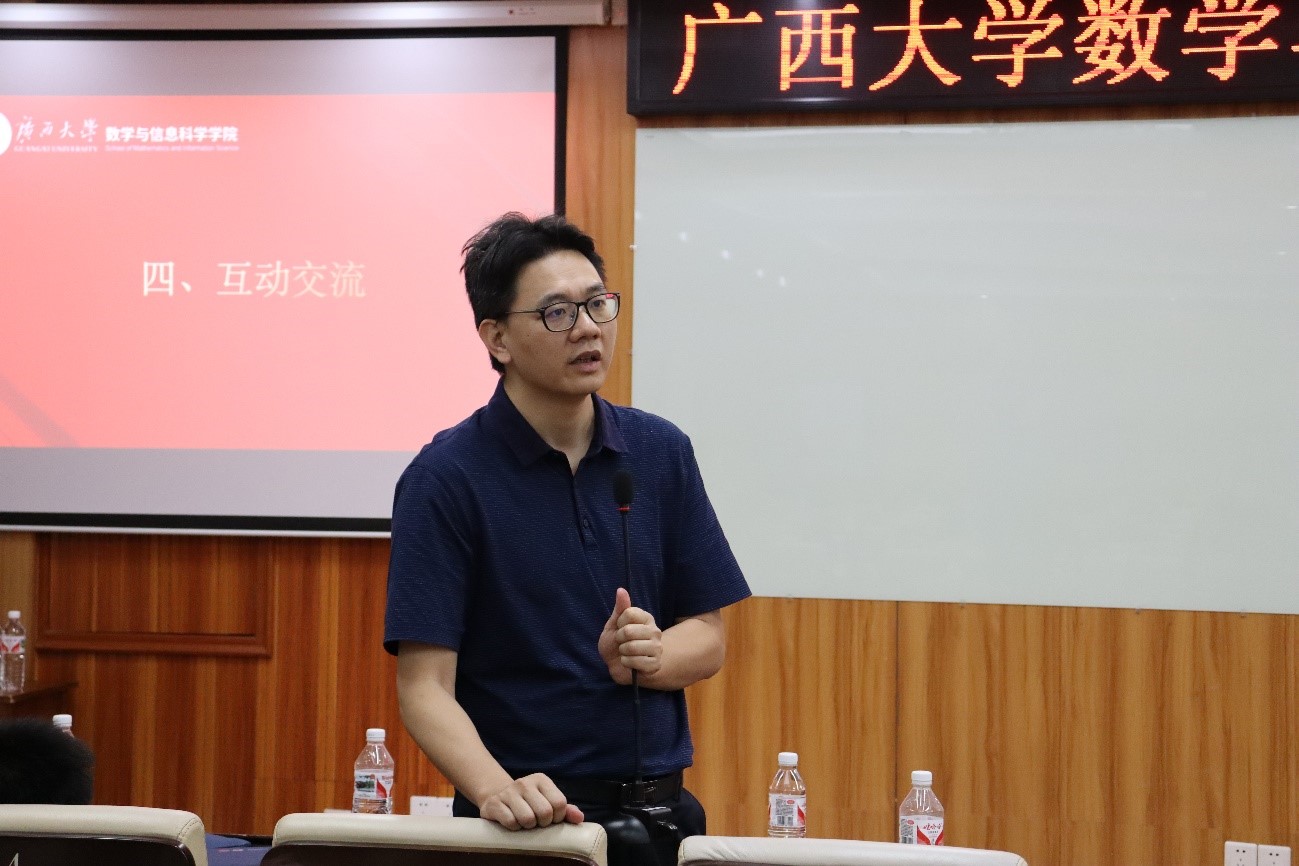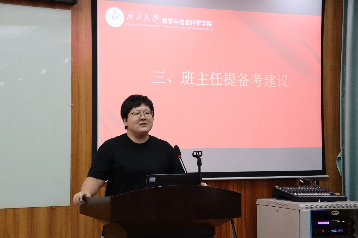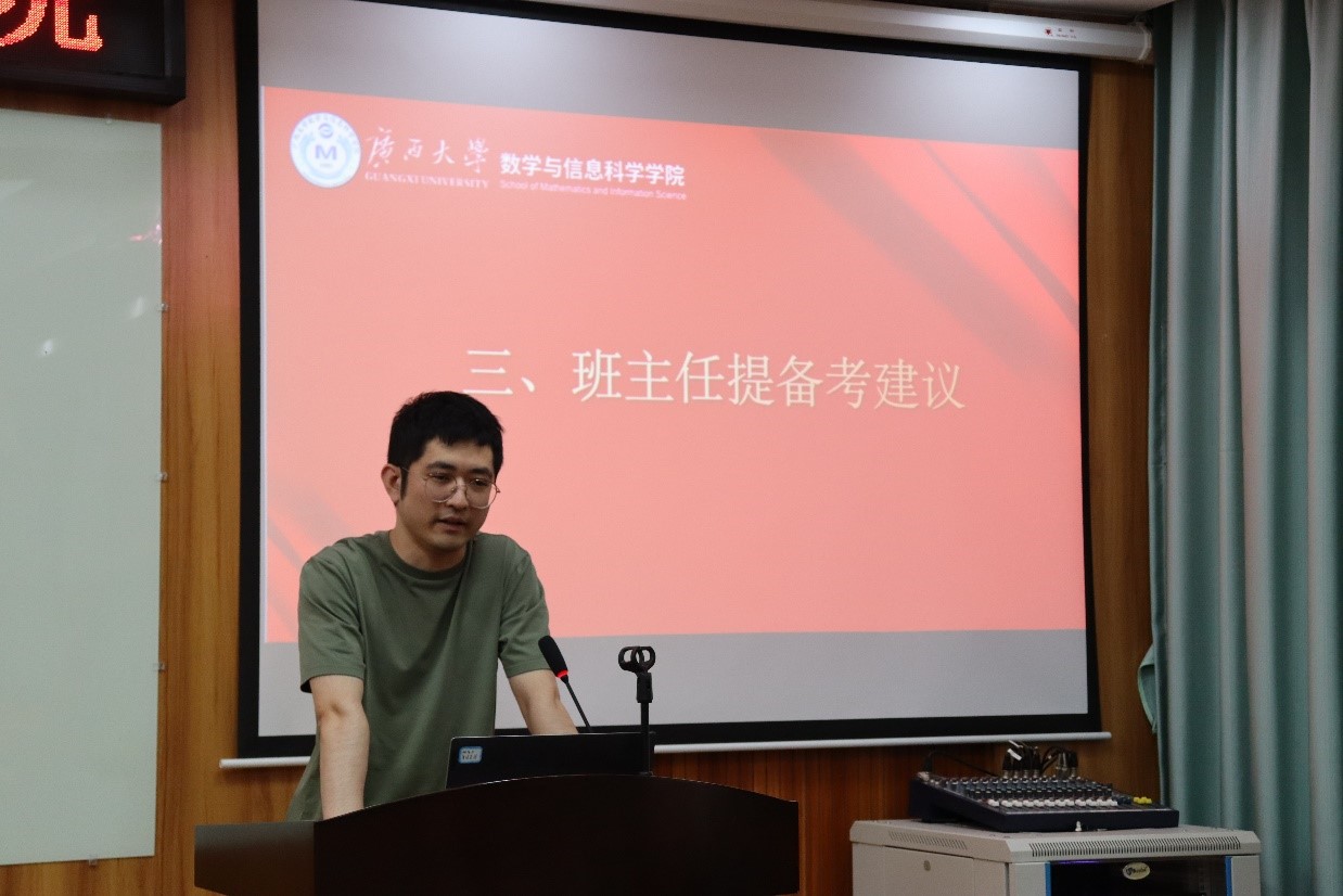 陈良对考研政策进行了详细解读,帮助同学们更好地了解考研的相关要求和流程。他还结合当前考研形势,分析了考研的难点和重点,就如何选择院校和专业提出了建议。何家维从研究方向结合职业生涯发展前景做了分析,总结了历年员工考研的录取情况,强调了继续读研提升的重要性,鼓励同学们明确读研目标,制订可行的复习计划,注重基础知识积累,提升解题能力,提高考研成功率。张幸说明了信息与计算科学专业应用性比较强的特点与优势,并就该专业在研究生阶段可拓展延伸的方向做了详细介绍,激发了同学们的学习兴趣与报考信心。刘楚箫强调复习阶段应注重巩固基础,提高对知识点更高层次的把握和运用,要善于归纳总结,形成自己熟悉的解题体系,从而在实考中面对陌生的试题时能把握主动,避免走入为做题而做题的误区。