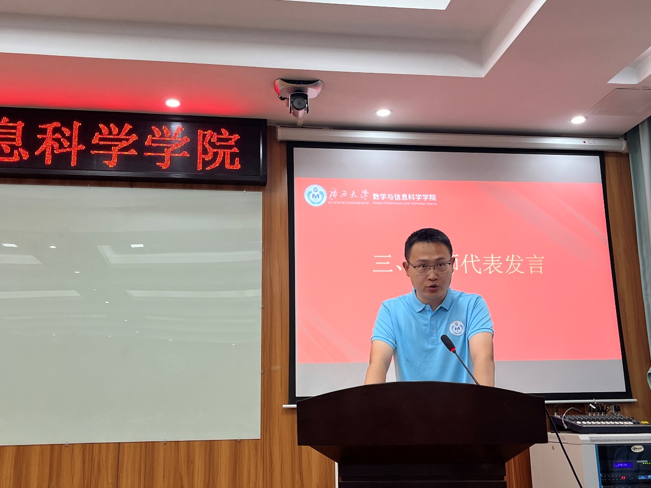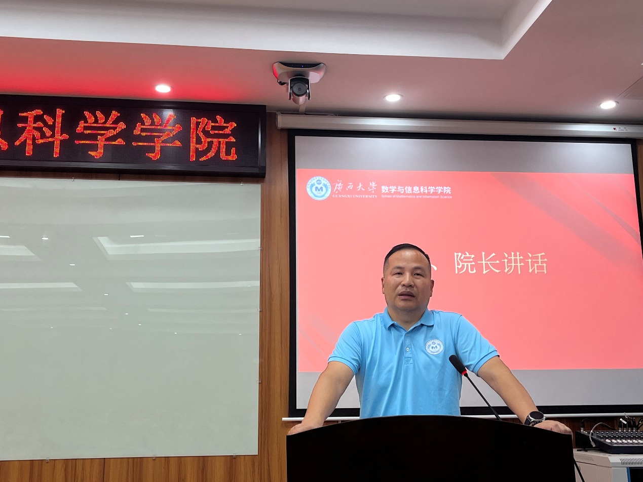 郭真华代表公司向今年入学的126名本科新同学、68名硕士研究生和16名博士研究生新同学表示热烈欢迎和祝贺。他指出,数学教育不仅仅是知识传授,更是逻辑思维和科学研究能力的培养。他强调,大学不是独木桥,比拼的不应该只有绩点的内卷,要全面发展,要注重培养大人格,研究大学问,涵养大胸怀,积蓄大能量。最后,他对新生们提出了三点要求:一是要读懂什么是大学。大学期间要不断地发现、探索自我,在打牢基础的同时留意寻找自己的兴趣和优势所在,学会思考,学会选择。二是要尊重老师,敬畏学术。要学会感恩老师的传道授业解惑,对待学术,应该时刻保持敬畏之心,恪守学术道德。三是坚持锻炼,强健体魄。良好的身体素质是做好学问的前提。拥有强健的体魄可以让同学们有足够的精力和耐力去应对长时间的学习和思考,提高学习效率,增强抗压能力。