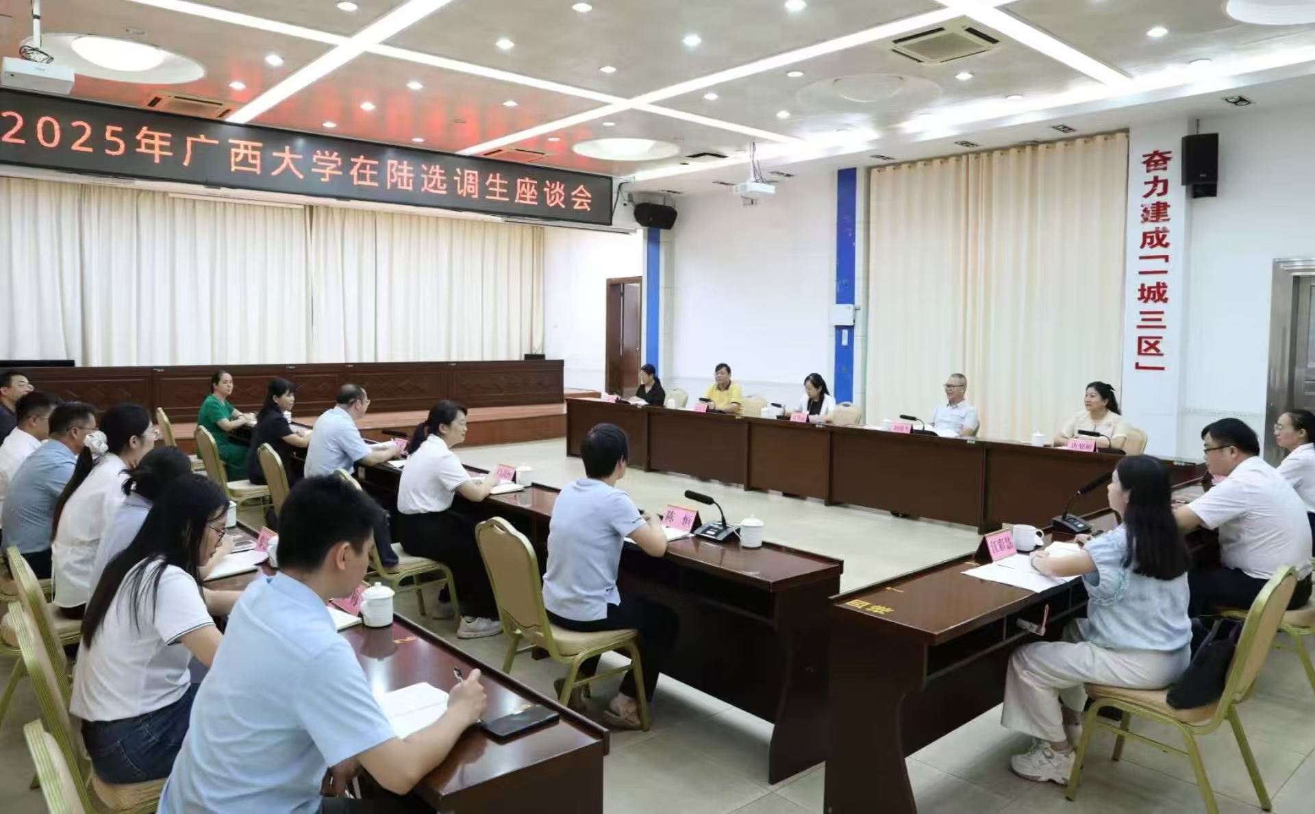 参加座谈会的选调生代表踊跃发言,分享了在陆川县成长的历程和工作生活体会,表达了对母校关心培养的感激之情,积极为母校建设发展建言献策。
