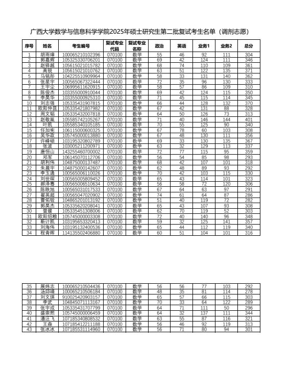 英国威廉集团官网英国威廉集团官网2025年硕士研究生第二批复试考生名单(调剂志愿)