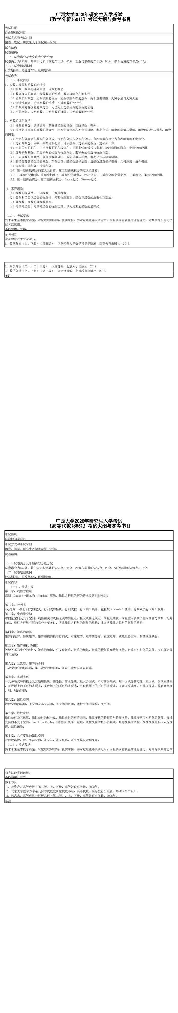英国威廉集团官网2026年研究生入学考试《数学分析(601)》《高等代数(855)》考试大纲与参考书目