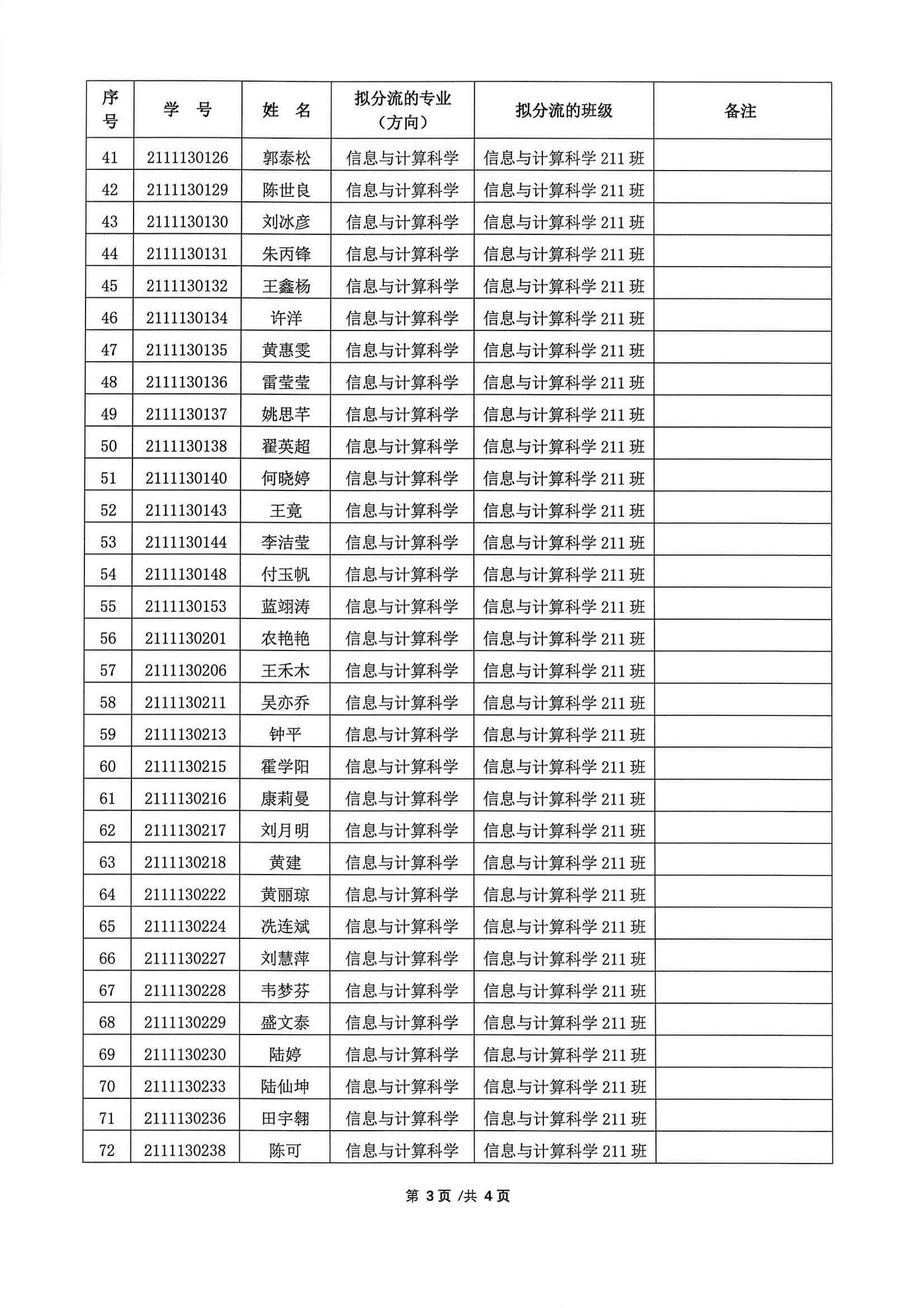 关于2021 级数学类普通本科生大类招生专业分流情况的公示