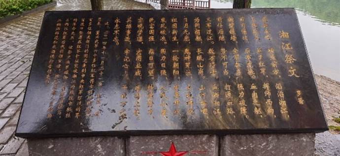 随后,大家赴兴安县界首镇参观中央红军渡江指挥部旧址—界首红军堂、界首渡口、红军街。在指挥部旧址门前的湘江渡口,公司党委理论学习中心组全员宣读湘江祭文,祭奠红军先烈,不忘英雄事迹。