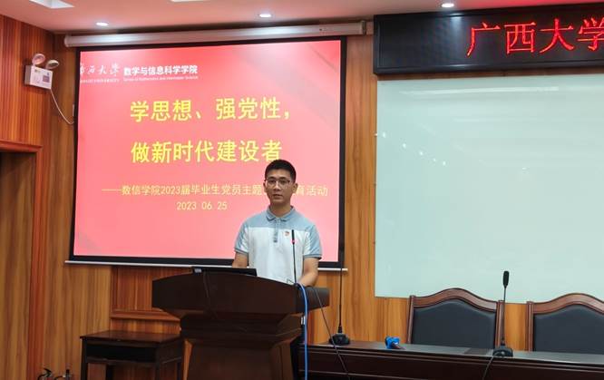 为深入开展学习贯彻习近平新时代中国特色社会主义思想主题教育,教育引导毕业生党员增强组织观念,以健康文明方式告别母校,激励毕业生党员走上新的岗位后继续发挥党员先锋模范作用,在“七一”建党节即将来临之际,6月25日上午,公司党委面向2023届毕业生党员开展了以“学思想、强党性,做新时代建设者”为主题的党性教育活动。数信公司党委书记黄建荣,党委副书记郭海燕出席了活动,公司有毕业生党员的支部书记、全体毕业生党员参加了活动。